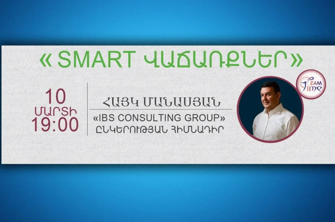 Օրերս Team Time -ի կողմից հրավերք ուղարկվեց IBS Consulting Group բիզնես խորհրդատվական ընկերության ղեկավար, բիզնես թրեյներ Հայկ Մանասյանին ներկայացնել պրոֆեսիոնալ բիզնես լսարանին հայտնի «SMART ՎԱՃԱՌՔՆԵՐ» թրեյնինգային մոդուլի սեղմ տարբերակը: Քանի որ գիտենք, որ կան շատ մարդիկ, ովքեր տարբեր պատճառներով չեն կարողացել մասնակցել հիմնական ինտենսիվ թրեյնինգին: Սա լավ հնարավորթություն է ներկա լինել սեմինարին և ստանալ հնարավորինս շատ ինֆորմացիա վաճառքների կառավարման այս թրեյնինգային մոդուլի մասին: