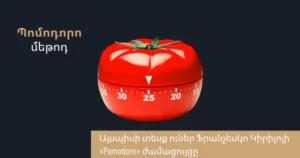 Արտադրողականության բարձրացման հեշտ եղանակներից մեկը Պոմոդորո մեթոդն է։Ի՞նչ եք կարծում, արդյո՞ք հնարավոր է չսպառել ողջ էներգիան, բայց իրականցնել առաջադրանքներն արդյունավետ։ Կալիֆորնիայի Իրվինի համալսարանի ուսումնասիրությունները ցույց են տալիս, որ ժամանակի կառավարման տեխնիկաները, ինչպիսիք են Պոմոդորո մեթոդը, կարող են բարձրացնել արդյունավետությունը 40%-ով: Իսկ ո՞րն է Պոմոդորո մեթոդը և ինչպե՞ս այն կիրառել: